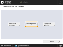Reinig het scangebied op de glasplaat en in de invoer voordat u aanpassingen maakt. Gebruik de volgende condities om de proefpagina af te drukken. Nauwkeurige aanpassingsresultaten worden wellicht niet behaald als de proefpagina niet correct is afgedrukt. Papierformaat: 100 mm x 148 mm tot 297 mm x 1.000 mm Afwerken: Niet-gecoat, Gerecycled, Katoen Type: Normaal, Briefpapier Basisgewicht: 52 tot 220 g/m2 Als u de proefpagina afdrukt op papier van een ander formaat dan het aangegeven papierformaat, wordt de beeldpositie mogelijk niet goed aangepast. Als een rand van de proefpagina onjuist is afgesneden of gevouwen, of als de afbeelding niet correct op de proefpagina is afgedrukt, kan de melding <Plaats de proefpagina goed op de glasplaat.> worden weergegeven tijdens het scanproces. Op enkele papiersoorten kunnen aanpassingen niet correct worden uitgevoerd, zoals papier met textuur met een grof oppervlak of gekleurd papier. Als een aanpassing niet correct werd uitgevoerd als <Scanner gebruiken> is geselecteerd, selecteert u in plaats daarvan <Scanner niet gebruiken>. In de volgende gevallen kan de proefpagina niet goed worden gescand en kan de aanpassing niet worden uitgevoerd: De proefpagina staat scheef terwijl deze wordt gescand. Het papierformaat is vergelijkbaar met EXEC of G-LGL, dat tijdens het scannen scheef kan komen te staan omdat de papiergeleider niet kan worden vastgezet. |