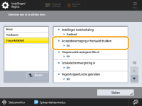 <Acceptatievertraging vr herhaald drukken> | <Aan>, <Uit> <Aan>: 0,1 tot 1,0 sec. | Ja | Ja | Nee | Nee | C | Settings/Registration Basic Information |