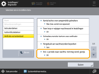 'Lijsten met instellingen' in de 'Gebruikershandleiding'.Item | Beschrijving van de instelling | DeviceAdmin | Netwerkbeheerder | Kan worden ingesteld bij de Gebruikersinterface op afstand | Apparaatgegevens Aflevering beschikbaar | Alles importeren-functie | Itemnaam bij het exporteren met de Gebruikersinterface op afstand |