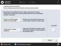 <Zarejestruj profil kolorystyczny> | <Przypisz war. RGB do wyjścia kolorów w karcie kolorów>, <Odtwórz kolory z innego urządzenia>, <Lista profili> | Tak | Nie | Nie | Nie | A | Settings/Registration Basic Information |