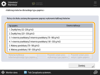 1 | Wybierz typ papieru, dla którego chcesz przywrócić początkowe ustawienia kalibracji kolorów. |