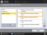 <Задержка принятия для повторных нажатий> | <Вкл.>, <Выкл.> <Вкл.>: 0,1–1,0 с | Да | Да | Нет | Нет | C | Settings/Registration Basic Information |