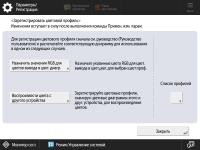 <Зарегистрировать цветовой профиль> | <Назначить значения RGB для цветов вывода в цвет. диагр.>, <Воспроизвести цвета с другого устройства>, <Список профилей> | Да | Нет | Нет | Нет | A | Settings/Registration Basic Information |