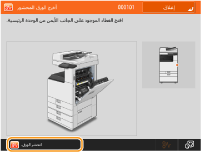 (شاشة الحالة)، يتم عرض <شاشة الحالة>. في هذه الشاشة، يُمكنك التحقق من حالة الطباعة وحالة الإرسال، بالإضافة إلى كمية الحبر المتبقي ومستوى الذاكرة.