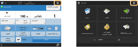 المعروضة على الشاشة <الرئيسية> وشاشة الميزات الأساسية لتخصيص الشاشة مثل إعادة ترتيب الأزرار أو إنشاء مفتاح مختصر. تخصيص شاشة لوحة اللمس