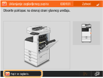 Prikazuje se trenutačni status ili zapisnik odabrane stavke. Na ovom zaslonu možete otkazati kopiranje, ispisivanje i prijenos faksa.