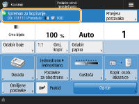 Prikazuje status postavke poput omjera kopiranja, veličine papira i broja kopija. Svakako potvrdite postavke kako biste pravilno kopirali. Da biste promijenili postavke, pritisnite gumb pod odlomkom zaslona.