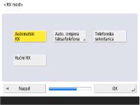 Pritisnite <Auto. RX> kad koristite samo funkciju faksiranja ili <Auto. izmjena faksa/telefona> kad su telefon ili slušalica spojeni na uređaj i pritisnite <OK>.