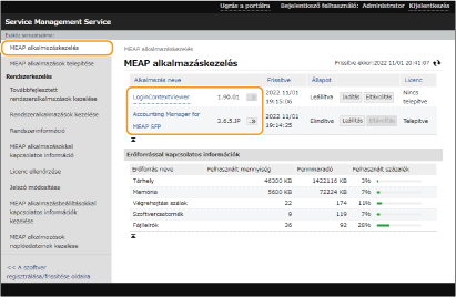 Ha van egy alkalmazás, amelynek rövidesen lejár a licence, ellenőrizheti a licenc lejárati dátumát a MEAP <MEAP szám. ellenőrzés> funkciójával a vezérlőpanel Főképernyő oldalán.