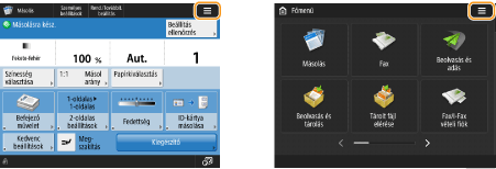 A <Főmenü> képernyőn és az Alapfunkciók képernyőn megjelenő