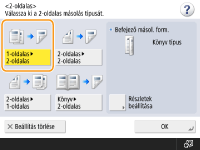 2-oldalas másolatok készítése esetében egyes beállítások (pl. papírméret és -típus) csak korlátozottan használhatók. További részletek: Hardver műszaki adatok.