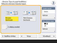 Nyomja meg a <Változtat> gombot az <Eredeti mérete> részben, és adja meg az eredeti méretét. Ha az <Autom.> lehetőséget választja, a készülék az eredeti méretének megfelelően automatikusan kiválasztja a brosúra méretét.