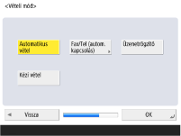 Nyomja meg az <Autom. vétel> gombot, ha csak a fax vagy a <Fax/Tel (autom. kapcsolás)> funkciót használja, amikor egy telefon vagy egy kézibeszélő van a készülékhez csatlakoztatva, majd nyomja meg az <OK> gombot.
