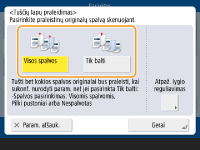 (Būkl. kontrolė) <Kopija/atspaudas> <Užduoties žurnalas> pasirinkite dokumentą <Detaliau> patikrinkite skaičių, kuris rodomas dalyje <Orig. lapų skaičius.>.Būsenos ekrane ir ataskaitos rodinyje rodomas skaičius, įskaitant tuščius lapus. Kopijų / spaudinių būsenos tikrinimas