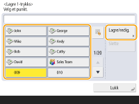 Hvis LDAP-serveren allerede er registrert på maskinen (Registrere LDAP-serveren), kan du søke etter destinasjoner og registrere dem i ettrykksknappene. Trykk på <Mott./vidr.s.innstillinger>