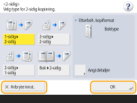 befinner seg nederst til høyre for å vise innstillingsskjermbildet. Når en innstilling er utført, vises innstillingsstatusen i den øverste delen til knappen, så endres fargen i den nederste delen.