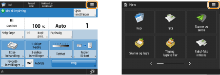 som vises på <Hjem>-skjermbildet og skjermbildet Grunnleggende funksjoner for å tilpasse skjermbildet, for eksempel omorganisere knappene eller opprette en snarveistast. Tilpasse berøringspanelet