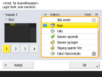 Du kan opprette en snarveisknapp for funksjonene på <Hjem>-skjermbildet. Bruk denne knappen for å bruke en annen funksjon uten å måtte gå tilbake til <Hjem>-skjermbildet. Opprett en snarvei ved å logge på med administratorrettigheter.