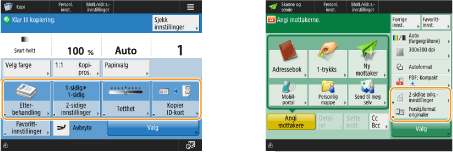 Du kan endre innstillingsknappene som vises på skjermbildene Grunnleggende funksjoner (for kopiering, faks og skanning). Du kan også vise et annerledes Grunnleggende funksjoner-skjermbilde, tilpasset for hver påloggede bruker.