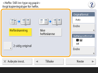Trykk på <Endre> i <Originalformat> og velg originalstørrelse. Hvis du velger <Auto>, velges hefteformatet automatisk i henhold til originalstørrelsen.