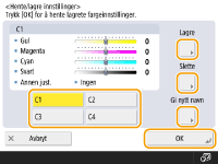 Du kan endre navnene på knappen <C1> til <C4>. For å velge knappen som skal endres, trykk på <Gi nytt navn> og angi et nytt navn.