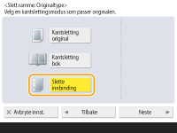 Trykk på <Kantsletting original> og angi <Originalformat>.