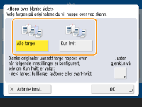 Maskinen kan oppdage blanke siden under skanning, og skrive ut alle sidene unntatt blanke sider.