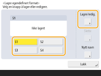Velg en knapp fra <S1> til <S4>, og trykk på <Lagre/redigere>.