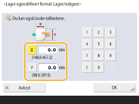 Spesifiser lengden på <X>-siden og <Y>-siden. Trykk på <X> eller <Y> for å angi lengden på hver side med talltastene.