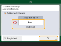 Du kan skanne originaler på forhånd og sende de skannede dokumentene på et bestemt tidspunkt.