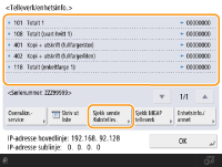 Du kan også sjekke tellerinformasjonen for hver MEAP. Trykk på <Sjekk MEAP-telleverk> på skjermen i trinn 2. Hvis du trykker på <Enhetsinfo./annet>