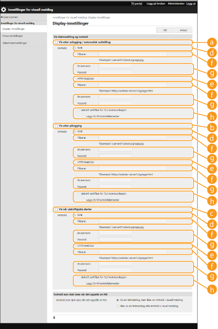 Merk av i boksen for å få tilgang til innholdet for å vise via [SMB].
