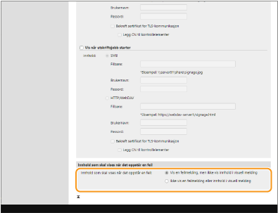Hvis innholdet av en eller annen grunn ikke vises, velger du om det skal vises et feilmeldingsskjermbilde eller ikke.