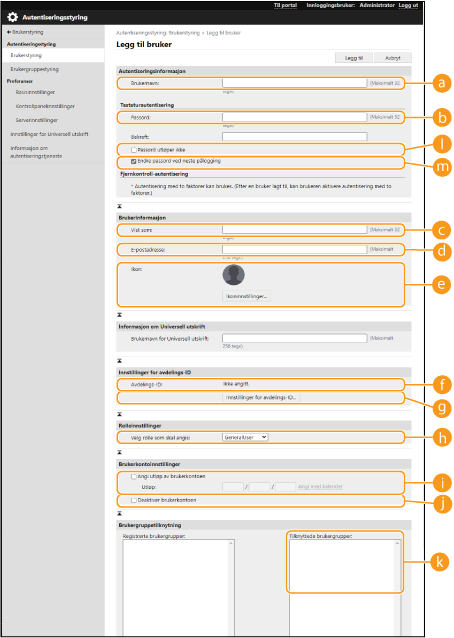 "Gruppenavnet" som er registrert i brukergruppebehandlingen, er skrevet her. Hvis brukeren tilhører flere grupper, er gruppenavn forbundet med en "|".
