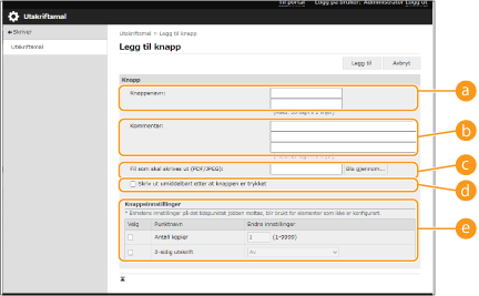 Angi knappens informasjon og konfigurer påkrevde innstillinger.