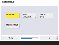 Trykk på <Auto mottak> når du kun bruker faksfunksjonen, eller <Faks/tlf (autovelger)> når en telefon eller et håndsett er koblet til maskinen, og trykk på <OK>.