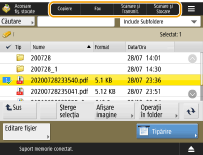 Dacă utilizaţi frecvent aceeaşi combinaţie de setări pentru copiere, fax şi scanare, este convenabil să înregistraţi aceste setări ca <Setări Favorite>.