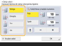 Apăsaţi <Faţa> sau <Spate> şi introduceţi lăţimea pentru fiecare margine.