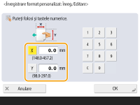 Specificaţi lungimea părţii <X> şi a părţii <Y>. Apăsaţi <X> sau <Y> pentru a introduce lungimea fiecărei părţi utilizând tastele numerice.