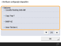 Puteți verifica echipamentele și funcțiile opționale instalate pe acest aparat.