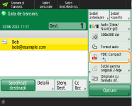 Nu puteţi seta modul PDF criptat când opţiunea <Auto (OCR)> este setată pentru <Nume fişier>.
