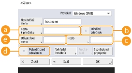 Táto položka sa zobrazí len vtedy, keď je v položke <Protokol> zvolená možnosť <Windows (SMB)> alebo <FTP>.