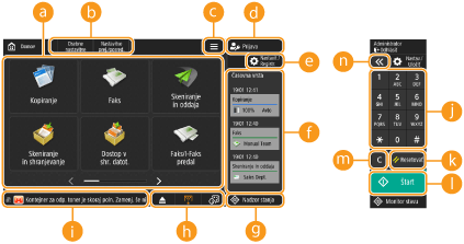 Týmito tlačidlami môžete otvárať obrazovky základných funkcií, napríklad „Kopírovať“ a „Skenovať a odoslať“.