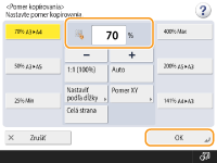 Môžete vykonať zväčšenie alebo zmenšenie špecifikovaním pomeru kopírovania (%). Môžete individuálne špecifikovať vertikálny a horizontálny pomer.