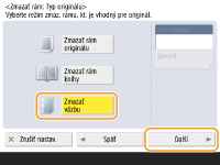 Stlačte tlačidlo <Stred> alebo <Strany> a zadajte všetky šírky zmazania.
