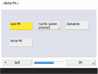 Stlačte položku <Auto PR.>, keď používate len funkciu faxovania, alebo položku <Fax/Tel. (autom. prepínač)>, keď je k zariadeniu pripojený telefón alebo slúchadlo, a následne stlačte tlačidlo <OK>.