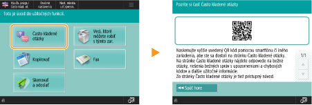 Če pritisnete možnost <Pogosta vprašanja>, se prikaže koda QR. Stran s pogostimi vprašanji za napravo lahko prikažete tako, da optično preberete to kodo QR v mobilni napravi, kot je pametni telefon ali tablični računalnik.