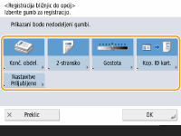 Za funkcijo kopiranja lahko konfigurirane priljubljene nastavitve registrirate kot bližnjico v <Programirane nast. Priljubljeno>.