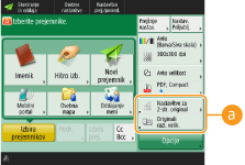 Primer: Zaslon z osnovnimi funkcijami kopiranja
