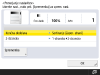 Rezervacija kopiranjaOptično branje je mogoče izvesti vnaprej, četudi se naprava pripravlja na tiskanje. Ta funkcija se imenuje »Rezervirano kopiranje«. Če želite na primer izvesti rezervirano kopiranje, ko je prikazan zaslon za tiskanje ali čakanje, pritisnite <Zapri>, na običajen način določite nastavitve kopiranja in pritisnite